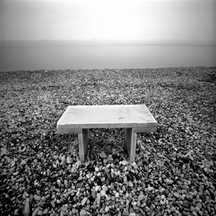 Luigi Tolotti ha percorso i sentieri della Costiera triestina, scendendo fino al mare; l’utilizzo di un foro stenopeico, che richiede pazienti tempi di esposizione e uno sguardo che ribalta i consueti codici di ripresa, ha determinato la cadenza dei passi e indicato le soste. I piccoli elementi naturali catturano con la loro vibrante semplicità l’attenzione del viandante e conquistano il primo piano, lasciandosi velare da una luce morbida, capace di trasformare i dardi del sole e i moti marini in grafismi soffusi. Ed è il mare, che si intravvedeva nelle tappe lungo la discesa e infine si rivela in tutta la sua pacata e quasi teatrale bellezza, a trasportarci in un tempo sospeso, dove non vi è la tirannia di ore, stagioni o impellenze.