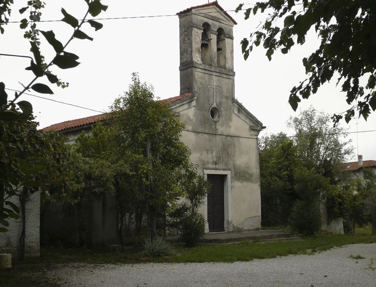Semplice costruzione che rientra nella tipologia delle chiese campestri ampiamente diffuse sul territorio fino al Seicento, non subisce nel tempo sostanziali alterazioni; durante la Grande Guerra viene adibita dai militari della Terza Armata a macello, e a conflitto terminato viene riconsacrata.