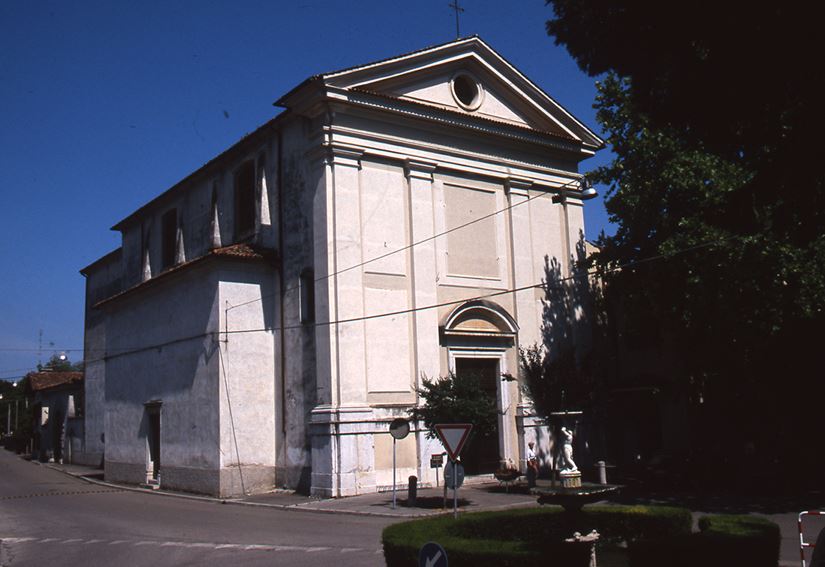L'edificio, già appartenente al convento dei Domenicani, presenta una semplice facciata tripartita da quattro lesene e sormontata da un timpano triangolare.