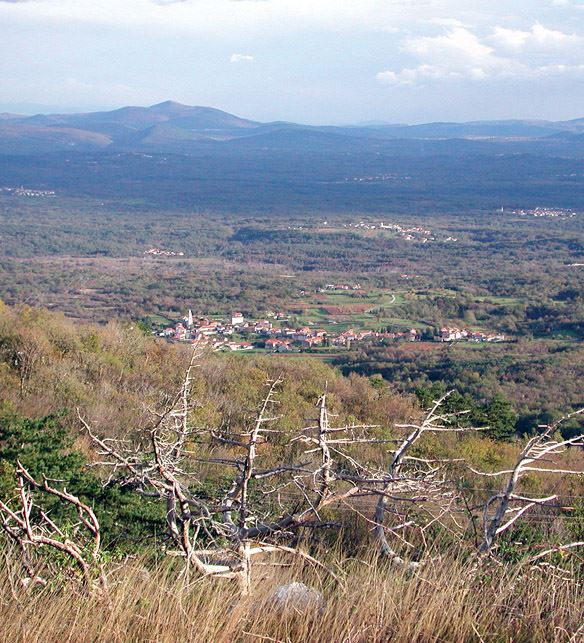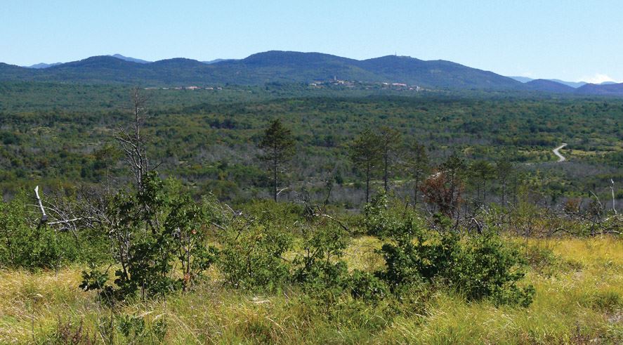 Soltanto sulla cima si sono conservati dei prati carsici, dove la Bora soffia facendo ondeggiare i sottili fili d'erba, tra i quali sbocciano, in primavera, vari tipi di fiori, tra cui i graziosi narcisi.