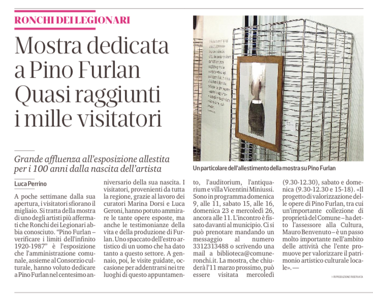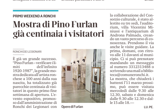 Il Comune di Ronchi dei Legionari e il Consorzio Culturale del Monfalconese - Ecomuseo Territori presentano la mostra "Pino Furlan - verificare i limiti dell'infinito 1920-1987"