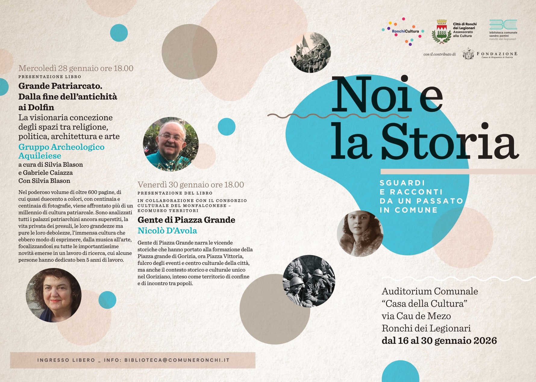 Venerdì 30 gennaio alle 18.00 presso l'Auditorium comunale "Casa della Cultura" di Ronchi dei Legionari,